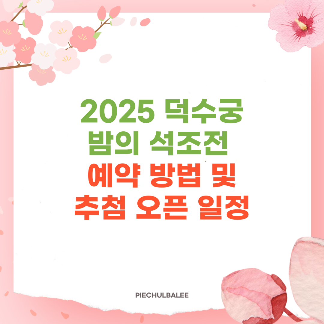 📌 목차2025 덕수궁 밤의 석조전 행사 일정예매 방법 및 일정 안내가격 및 할인 정보각종 프로그램들🌙 2025 덕수궁 밤의 석조전 예약 방법 및 예매 추첨 오픈 일정🌙✨ 봄이 다가오며 덕수궁의 아름다운 야경을 배경으로 펼쳐지는 '2025 덕수궁 밤의 석조전'이 다시 돌아왔어요. 덕수궁의 대표 건물인 석조전을 야간에 관람하며, 전문 해설사의 설명과 함께 고종 황제가 즐기던 가배차와 디저트를 맛보고 창작 뮤지컬까지 감상할 수 있는 특별한 프로그램이에요. 올해도 많은 분들이 기다리고 있는 만큼, 빠르게 마감될 가능성이 높으니 미리 준비하는 게 좋아요! 그럼 2025년 덕수궁 밤의 석조전 예약 방법과 예매 오픈 일정에 대해 자세히 알려드릴게요😊. 🎟️ 티켓링크 예매 바로가기 ➡️ 2025 덕수궁 밤의..