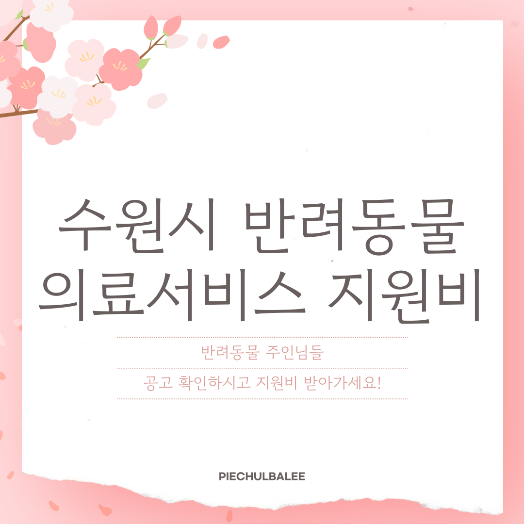 📌 목차🔹 신청 기간 및 대상🔹 지원 내용 및 한도🔹 신청 방법🔹 주요 구비서류🔹 유의사항2025년 수원시 반려동물 의료서비스 지원사업 안내 🚀 겨울철 반려동물 건강 관리에 어려움을 겪고 계신가요? 수원시에서 돌봄 취약가구를 위한 반려동물 의료서비스 지원사업을 실시합니다. 선착순 지원이라 빠르게 사업지원비가 소진될수 있어 빠른 시일 내 신청하셔야 합니다. 먼저 이 글에서 지원 대상, 신청 방법, 지원 내용 등 자세한 정보를 알려드릴게요. 수원시 반려동물 지원사업 신청하기➡️ ✨ 신청 기간 및 대상✅ 신청 기간2025년 3월 4일(화) ~ 11월 28일(금)선착순 지원 ✅  지원대상수원시 주민등록자로 실제 거주 중본인 명의로 동물등록된 개나 고양이 소유자 (  입양일(기증일) 2024. 3. ..