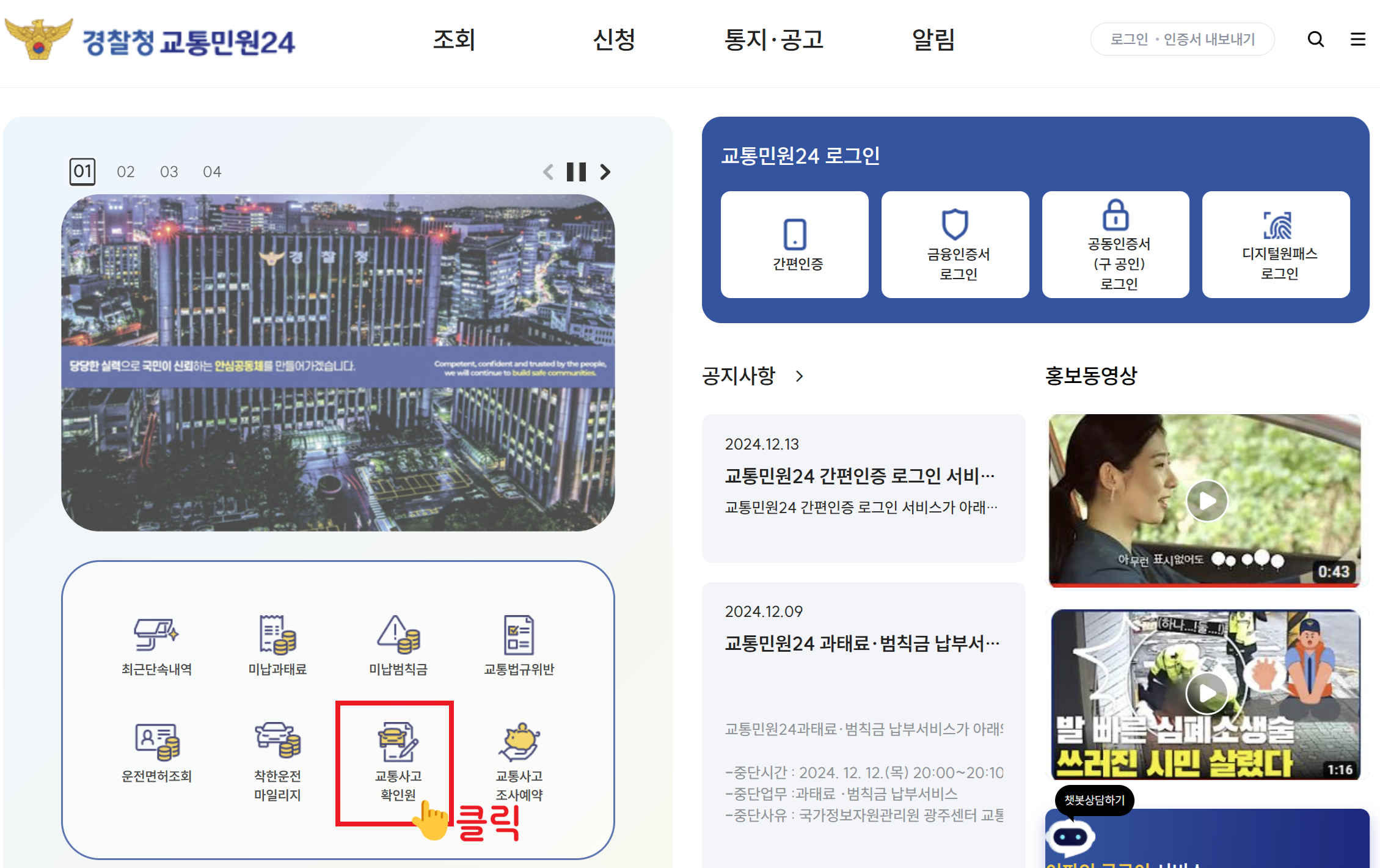 가장 많이 이용되는 방법 중 하나가 바로 경찰민원포털(이파인)을 통한 발급이에요.