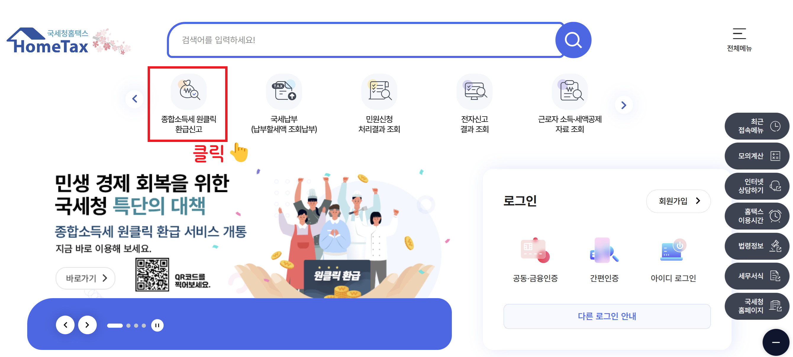 국세청 원클릭 환급서비스로 쉽고 빠르게, 그리고 무료로 여러분의 환급금을 찾아가세요.