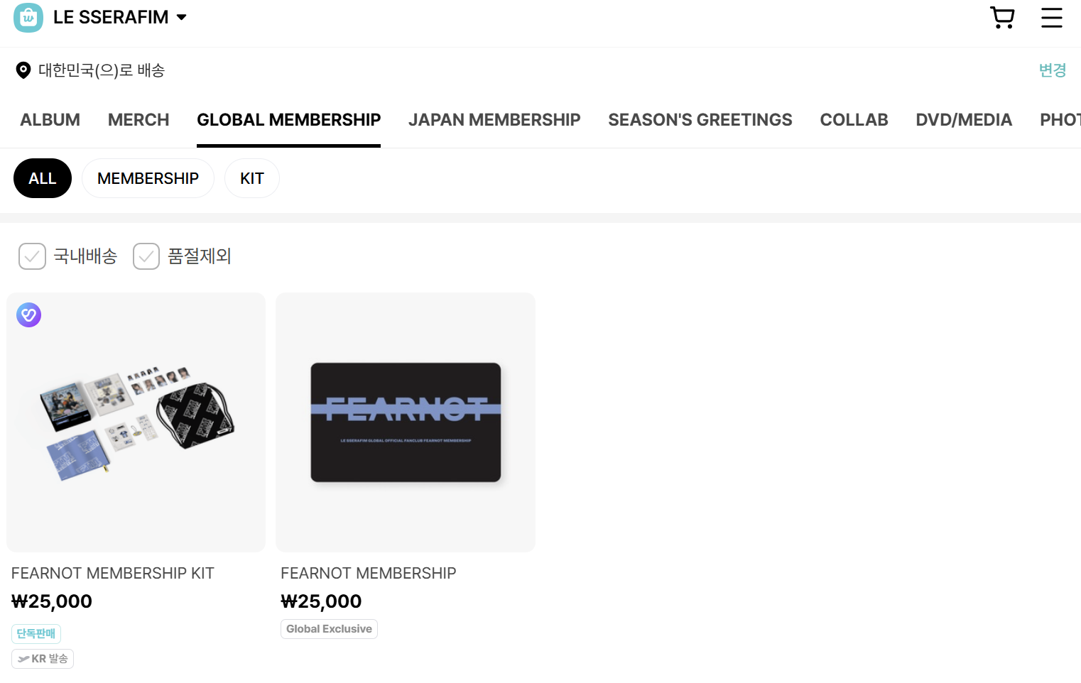 - 위버스샵 접속: 위버스샵에서 FEARNOT 멤버십 상품 구매!