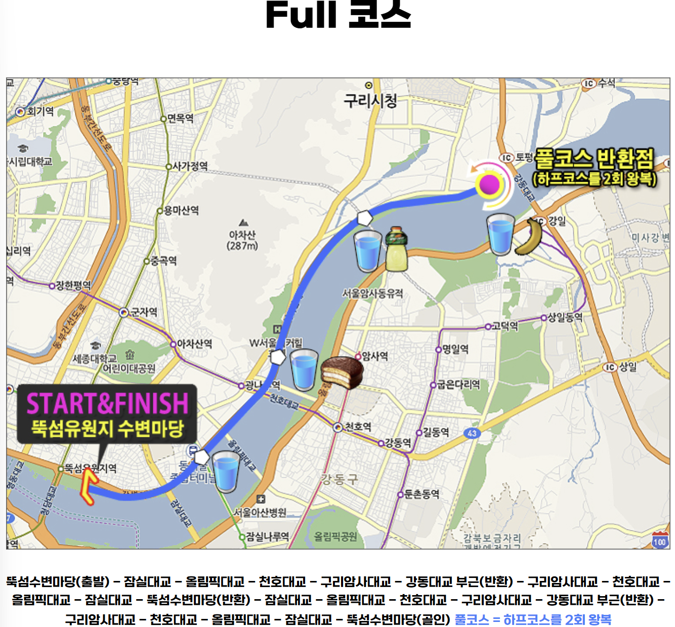 - 기념품 : 기념티셔츠, 완주메달, 기록증, 빵과 음료