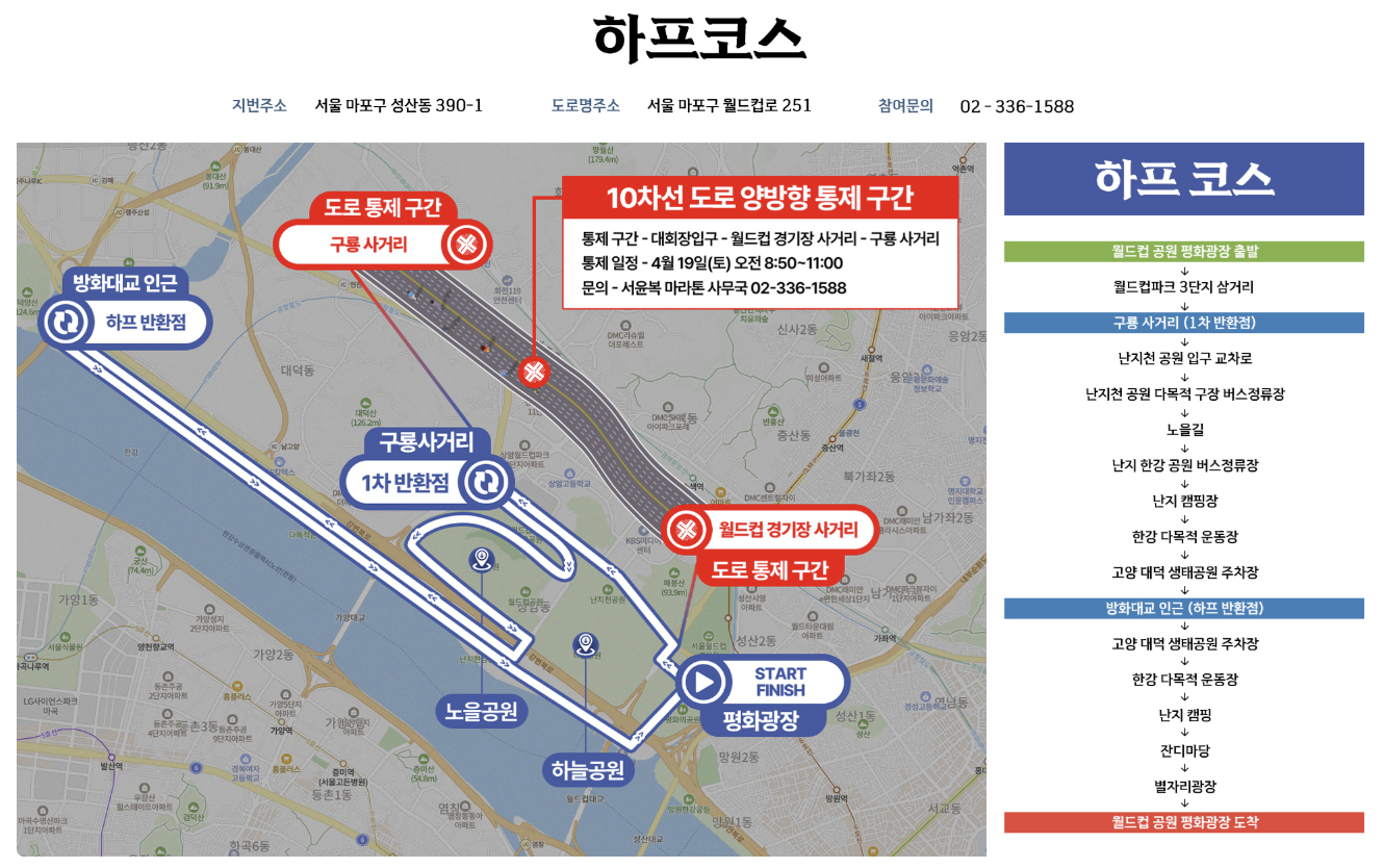 - 코스 : 하프, 5KM, 10KM