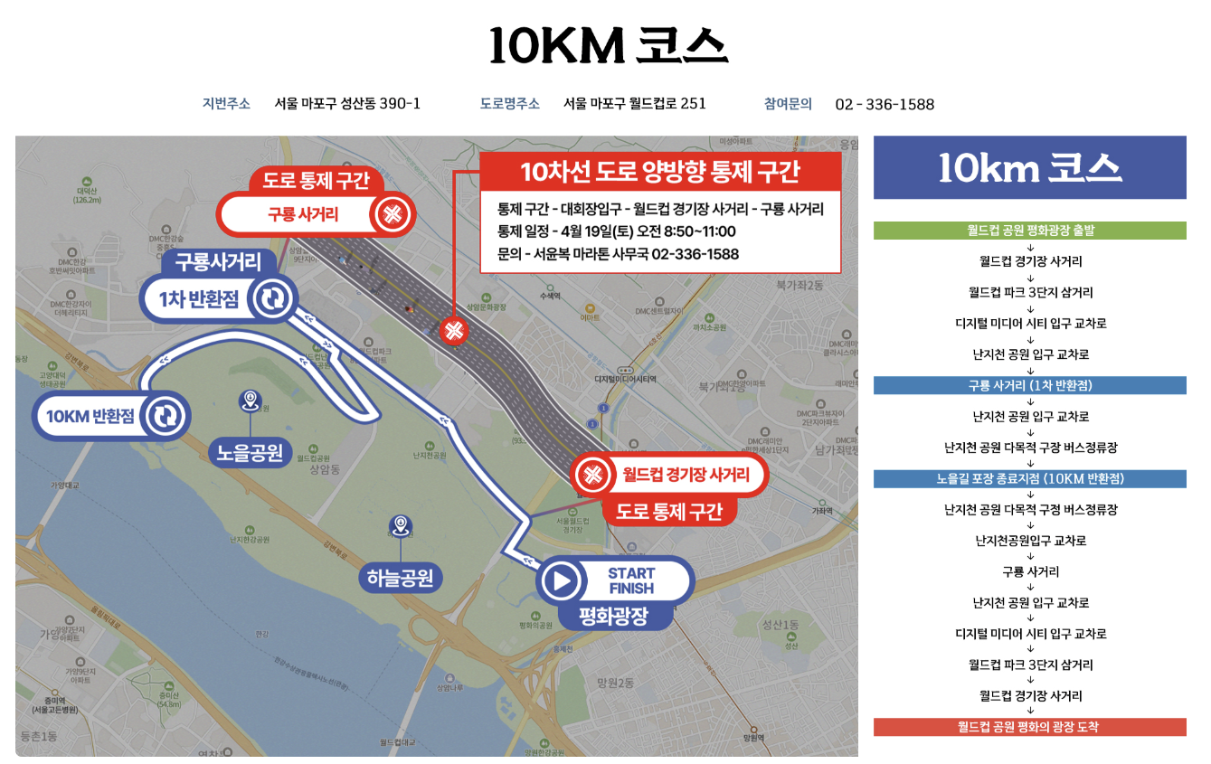 - 코스 : 풀, 하프, 5KM, 10KM