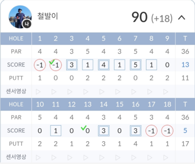 드라이버 비거리 욕심이 스멀스멀 올라오더니 OB로 이어졌고, 퍼팅에서도 불안한 손놀림 때문에 3~4번씩 시도하는 상황이 발생했습니다.