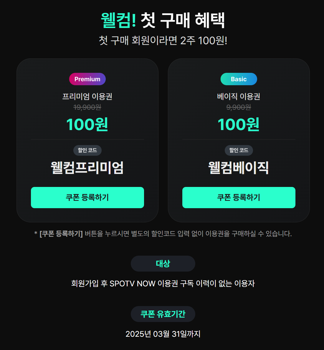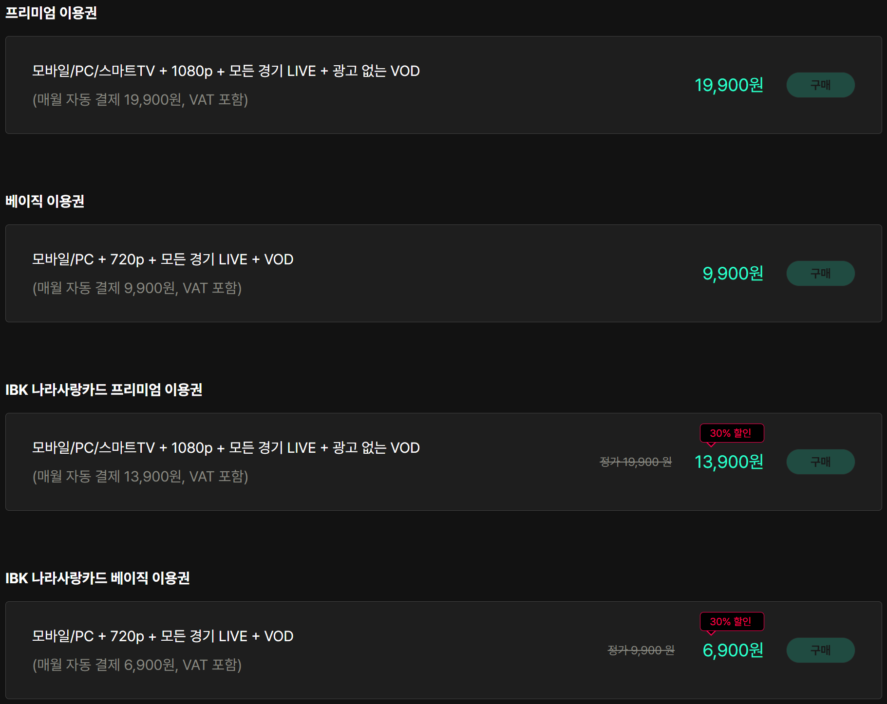 📢 스포티비나우 최대 30% 할인받고 이용권 구매하기! 무조건 PC로!