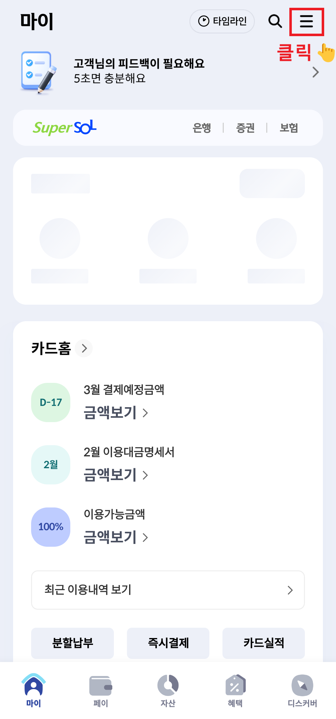 - 앱에서 "월렛(Wallet)" > "카드·계좌 관리"로 들어가요.