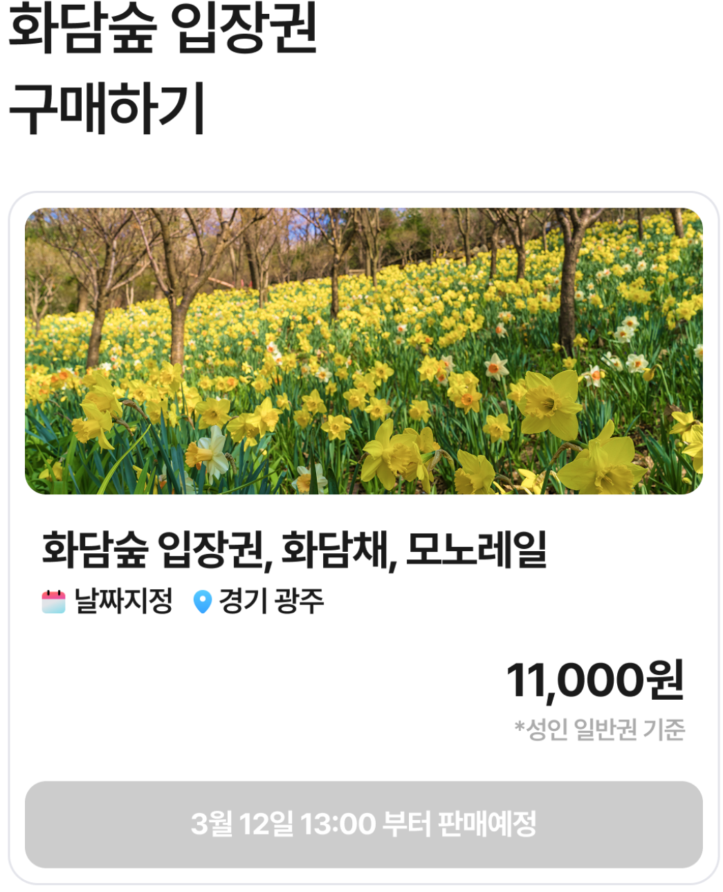 📌 화담숲 봄시즌 예약은 3월 12일(수) 오후 1시부터 야놀자를 통해 오픈되니, 빠르게 구매해야되요!