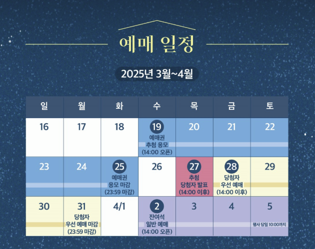 - 당첨자 예매 결제 기간: 2025년 3월 28일(금) 14시 이후 ~ 3월 31일(월) 밤 11시59분까지