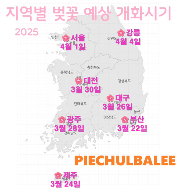 🌸 봄이 다가오면서 벚꽃이 언제, 어디서 가장 아름답게 필지 궁금해하시는 분들이 많을 거예요. 올해는 따뜻한 기온 덕분에 벚꽃 개화 시기가 다소 앞당겨질 전망인데요! 2025년 지역별 개화 시기와 추천 명소를 한눈에 확인해보세요!